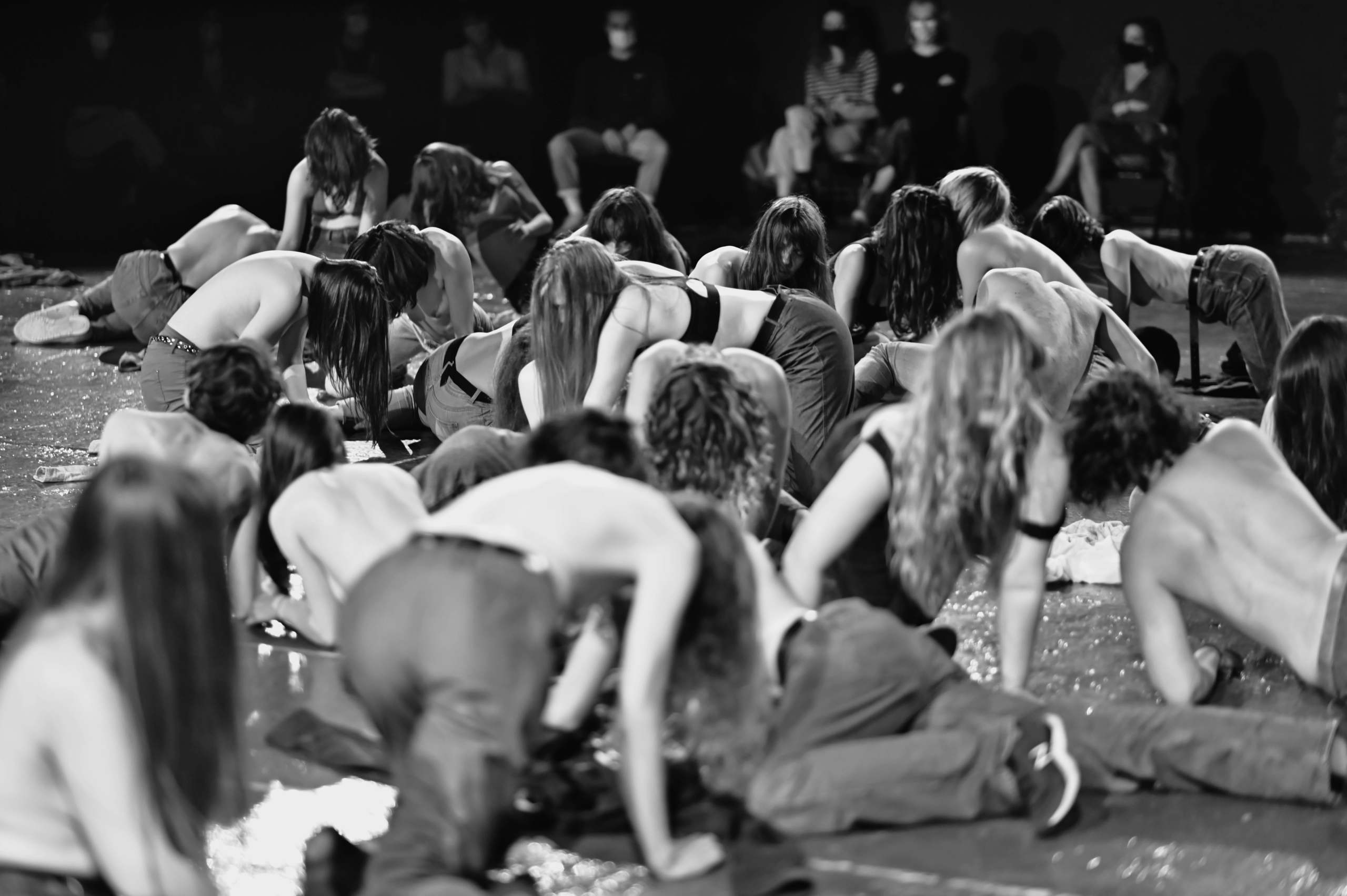 Cette pièce offre une construction essentiellement abstraite, un tableau vivant et vibrant, sans trame narrative, mais reçoit, dans un arrière-plan onirique, des signes, symboles et mythes projetés par l’imaginaire, conscient ou inconscient, des performeuses et des spectateurs, dans leur subjectivité. Le désir est de transmettre une nouvelle perception des relations entre les individus, et par delà la question de genre, de révéler une humanité au travers des sensations et des émotions primordiales que chacun reste libre d’interpréter;